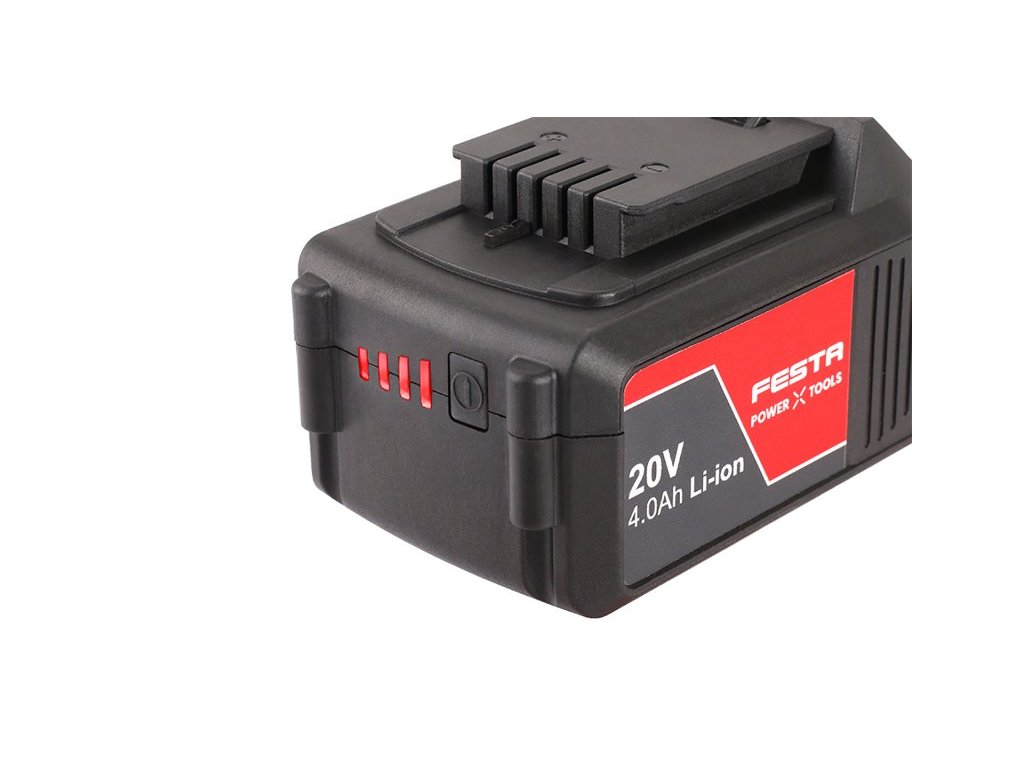 - Li-ion technologie použitá v bateriích FESTA Power x tools nabízí možnost dobíjet baterie kdykoliv - bez snižování jejich kapacity, u Li-ion baterií také dochází k jen velmi pomalému samovybíjení