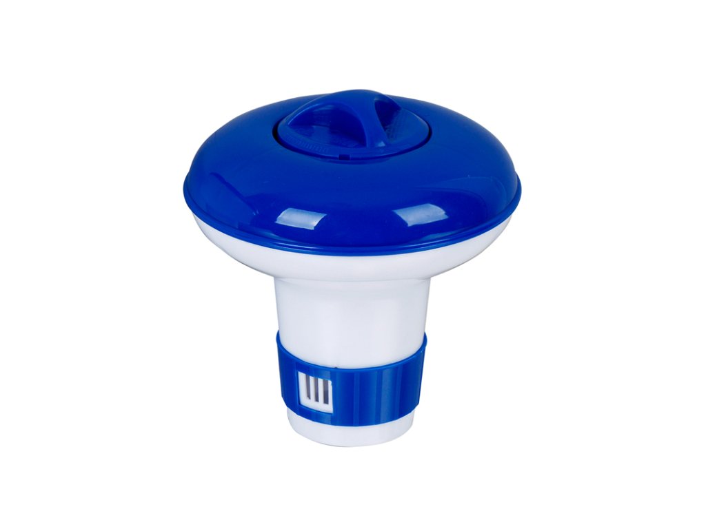 Plovák do bazénu malý je určený pro mini 20 g tablety chlorové i bezchlorové. Tento bazénový plovák je vhodný pro menší bazén i do vířivky.Dávkovací plovák na 20 g mini tablety. Bazénový dávkovač na mini tablety je ideální pro menší bazény, nebo vířivky. S tímto dávkovačem chloru nebo bezchlorové chemie můžete mít svou vířivku nebo bazén neustále připravený ke koupání. Plave kolem, aby přenesl a rovnoměrně rozložil tablety po vodě. Tento bazénový dávkovač používá uzamykací víčko pro bezpečné udržení chloru uvnitř a také nastavitelný ovládací kroužek pro regulaci rozptýleného množství chloru ve vodě. Je vyroben z plastu odolného vůči UV záření a je dostatečně odolný, aby odolal venkovním živlům. Usnadněte si údržbu svého bazénu či vířivky s tímto plovoucím dávkovačem. Je modrobílý a snadno se skládá a plní. Díky tomuto dávkovači je přidávání chloru či bezchlorové chemie do vaší vody bezpečnější.