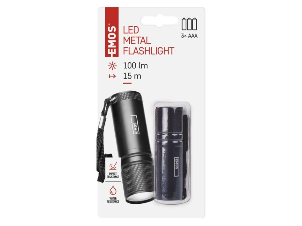 Produkt: COB LED ruční kovová svítilna P3894, 100 lm, 3× AAATechnické parametry: