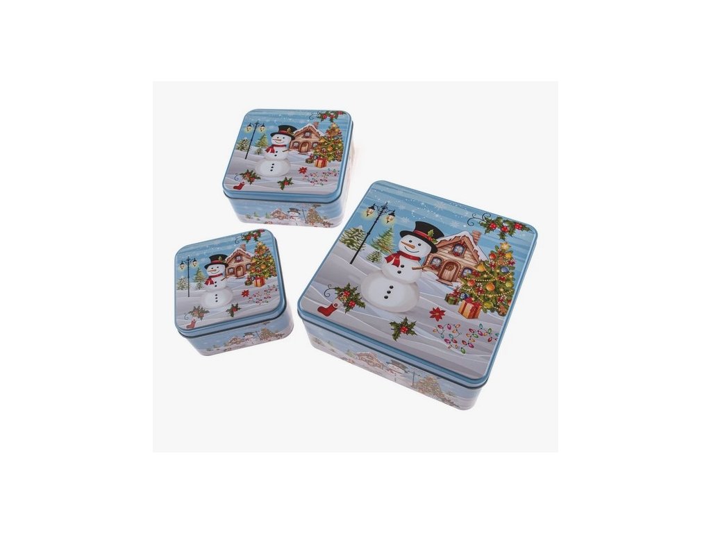 dóza plech. 3ks sada čtverc. SNĚHULÁK MODRÁ, 20x20x8cm