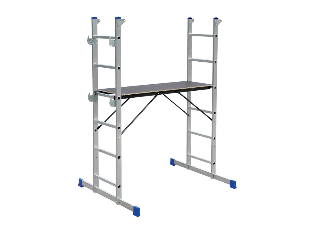 Produkt: ELKOP Skládací lešení | 2x6, nosnost 150 kgMožnost úpravy na schody. Široká plošina zabezpečuje vysoký komfort při práci. Možnost úpravy na dvojitý a výsuvný žebřík. Je vhodná pro domácí i profesionální použití. Protiskluzové botky zajišťují stabilitu plošiny / žebříku.