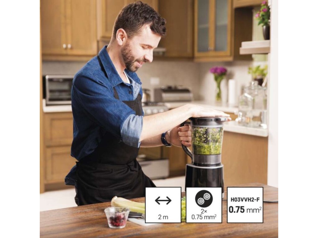 Produkt: Flexo šňůra PVC 2× 0,75mm2, 2m, černáTechnické parametry: