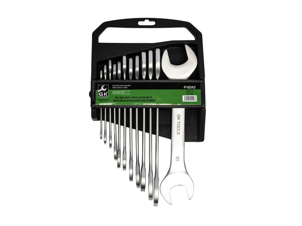 GK TOOLS Sada plochých klíčů, matné 12 dílů | 6-32 mm, plastový držák