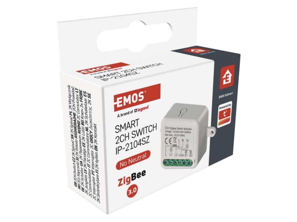 Produkt: GoSmart modul spínací IP-2104SZ, ZigBee, 2-kanálový (nevyžaduje N vodič)Technické parametry: