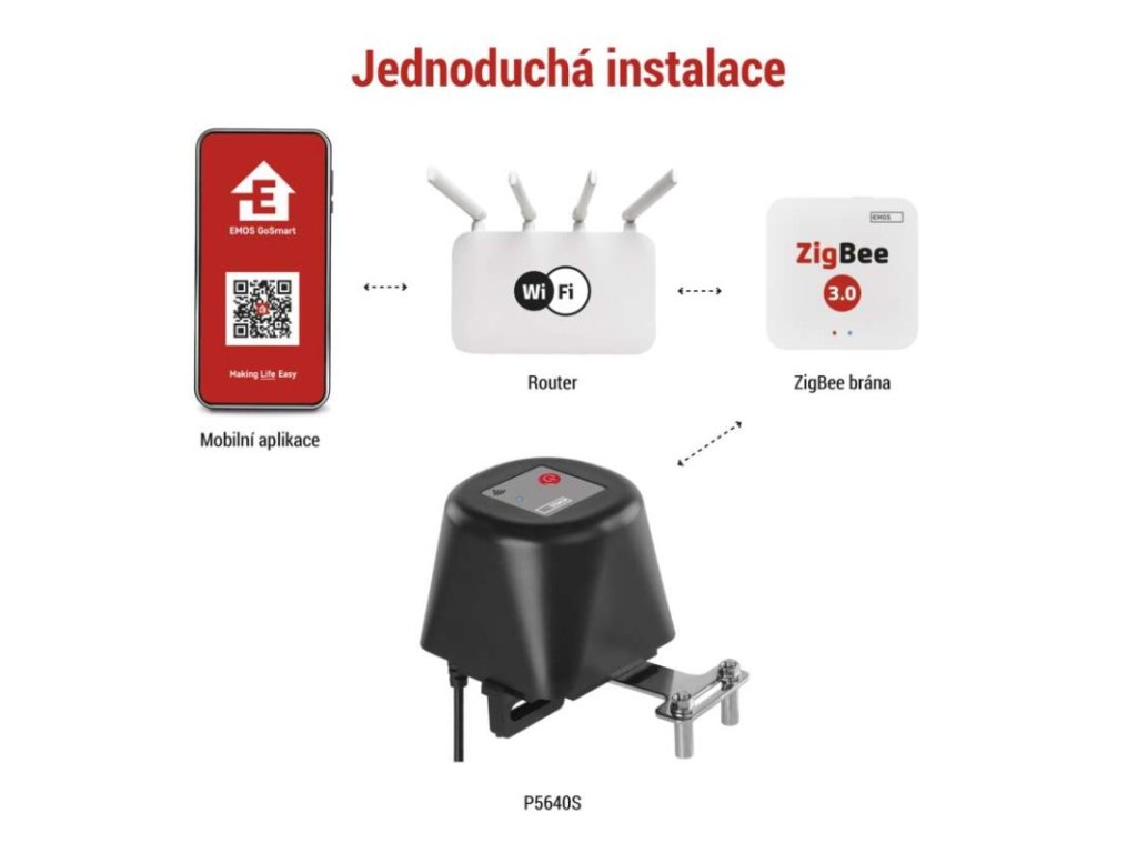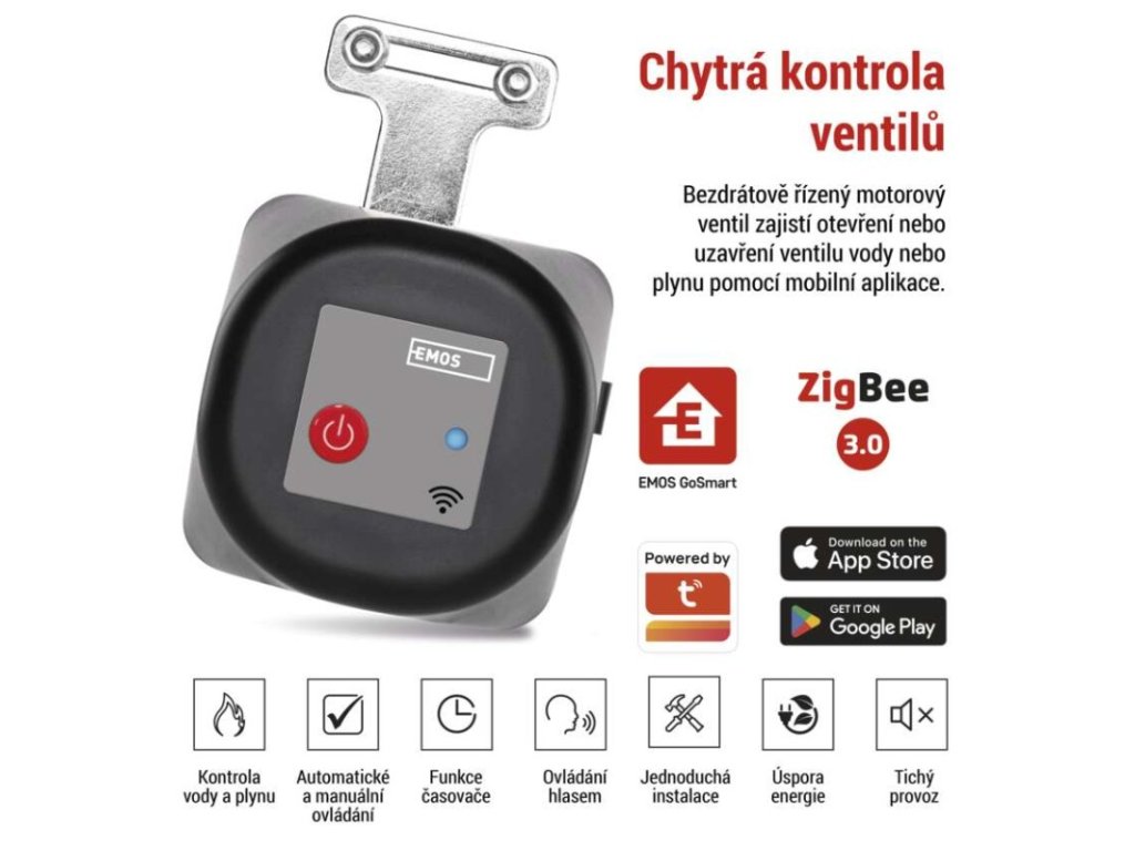 Produkt: GoSmart Motorizovaný zavírač ventilu voda/plyn P5640S ZigBeeTechnické parametry: