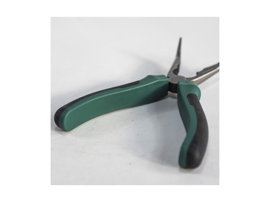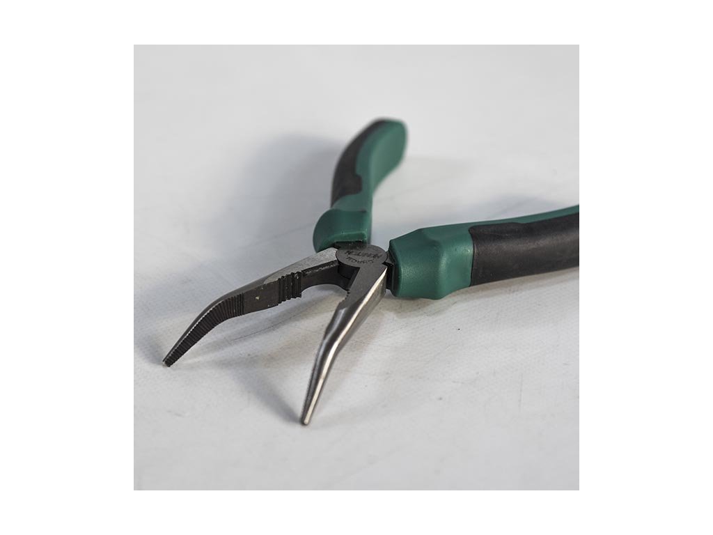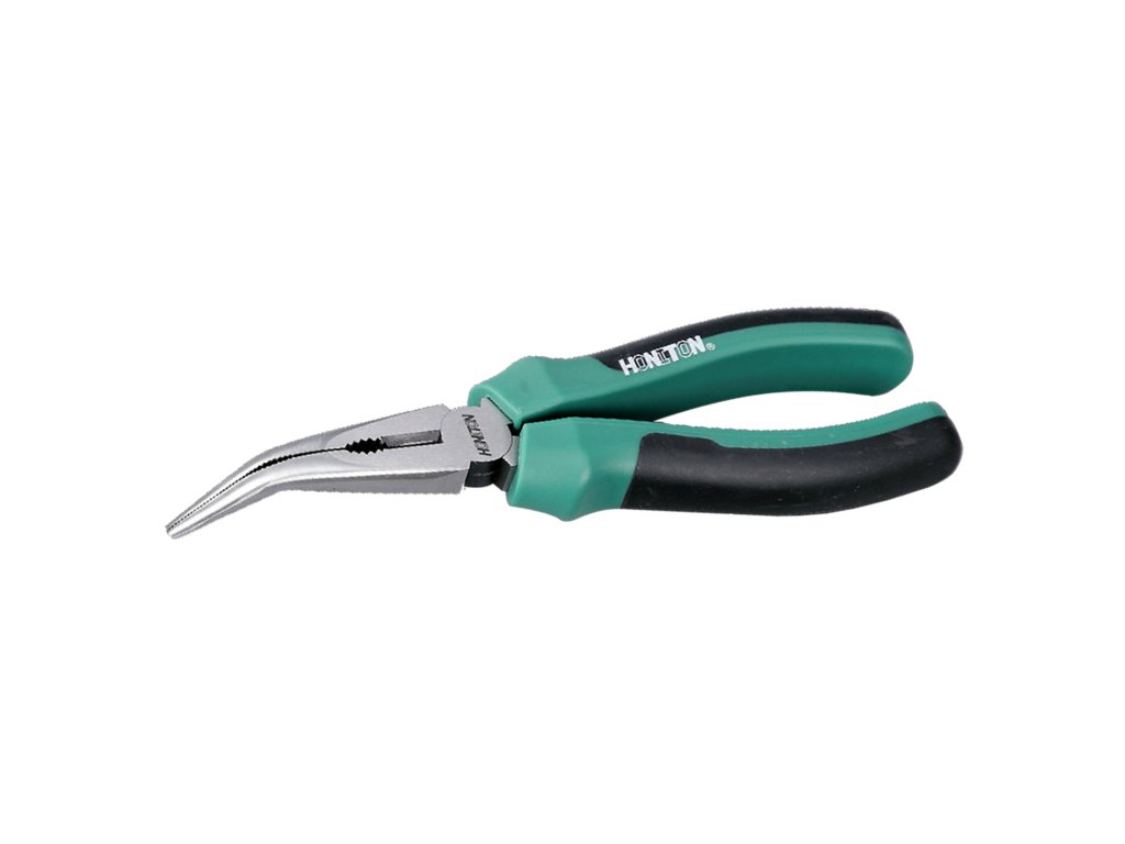 Produkt: HONITON Kleště prodloužené zahnuté | 200 mmRUKOJEŤ: Bi-komponentní materiály. Protiskluzové, pohodlné uchopení. Ergonomický design. Odolnávůči olejům, rozpouštědlům, chemikáliím, nezatěžuje přírodu. Eco-přátelské, recyklovatelnémateriály. Vysoký točivý moment a přenos síly.ČELISTI: Chrom-vanadiová ocel 40CrV