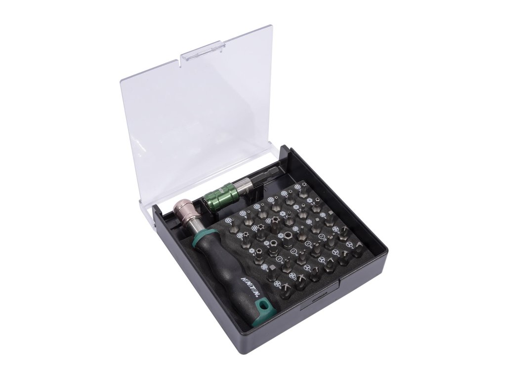 | Bity 1/4": | TRX s otvorem: T7, T8, T9, T10, T15, T20, T25, T30, T40; IMBUS s otvorem: 2, 2.5, 3, 4, 5, 6 mm; Čtyřhran: 0, 1, 2, 3; Spanner: 4, 6, 8, 10; TORQ: T6, T8, T10; Tri-Wing: 1, 2, 3, 4 |