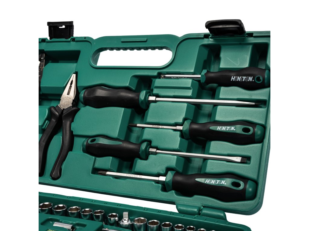 Produkt: HONITON Sada nářadí 1/4"-3/8" 112 dílůU nás v MOJE ŽELEZÁŘSTVÍ.cz prodáváme více než 50 000 produktů. Proč nakoupit kvalitní zboží a příslušenství za rozumné ceny právě u nás?