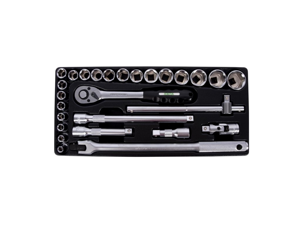 Produkt: HONITON Sada šestihranných hlavic 1/2” 27 dílů | plastové plato BSada na plastovém platu k uložení do montážního vozíku PA4007, HA104.
