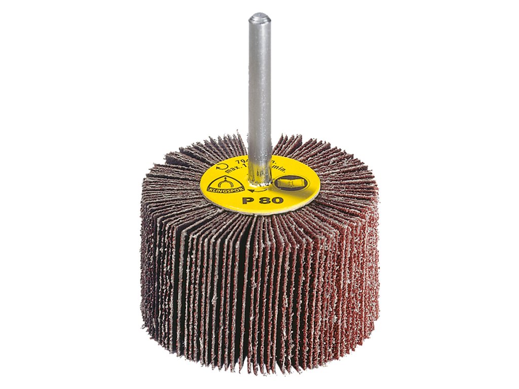 Produkt: KLINGSPOR Kotouč lamelový na stopce | 50x20x6 mm zr. 40Lamelový kotouč se stopkou pro ruční brusky, vhodný pro opracování profilovaných obrobků, vnitřních ploch, úzkých a těžce přístupných míst, obzvláště vhodný pro radiální použití.