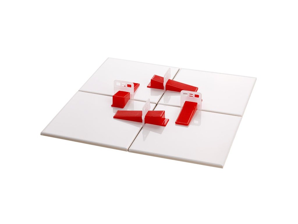 - nivelační systém obsahuje - distanční spony různých tlouštěk a nivelační klínky (opakovaně použitelné)