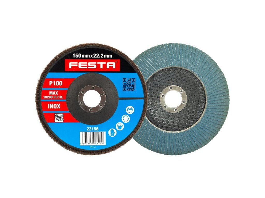 Zrnitost: 100 Druh Zrna: oxid zirkoničitý Pojivo: umělá pryskyřice Podkladový materiál: pružná tkanina-100% bavlna (240-260g/m2) Provedení: vyhnutý vnitřní průměr: 22,2mm Max. Pracovní rychlost: 80m/s Max. přípustné otáčky: 10200 1/min.Doplňkové parametry