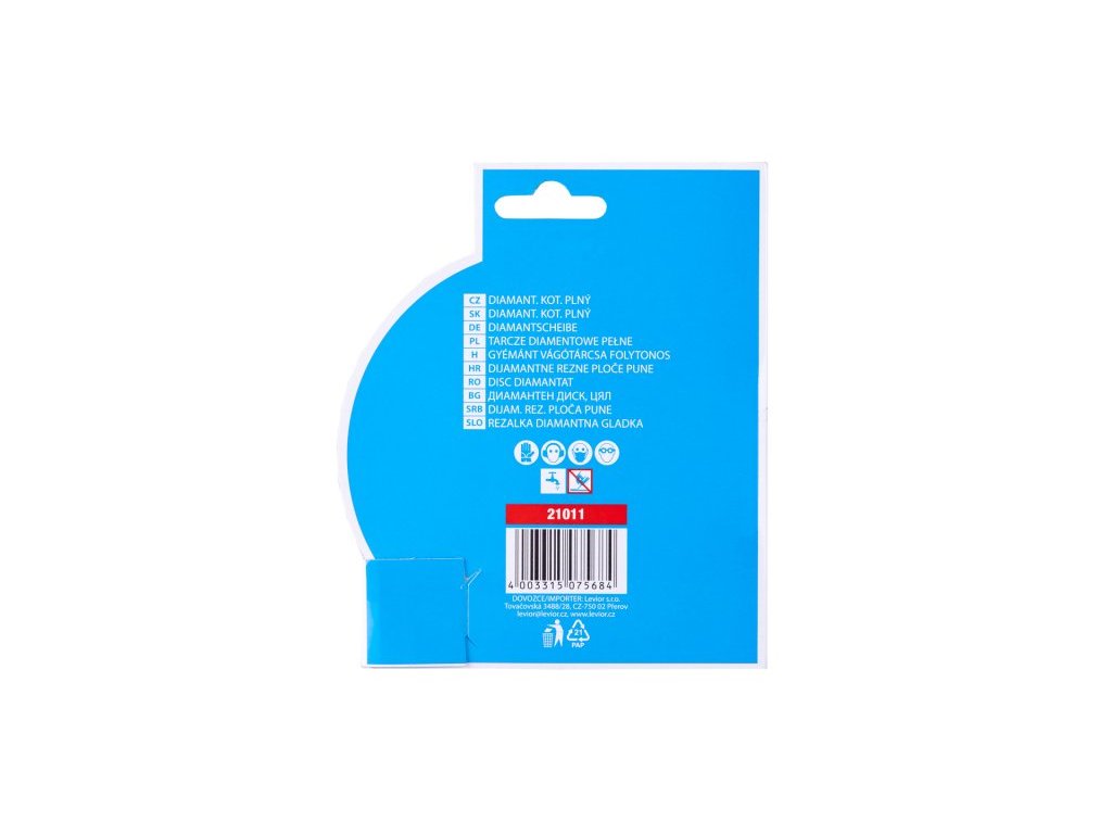 Diamantový kotouč DIAMANT, provedení : PLNÝ - celoobvodový, kvalitní diamantová vrstva s vysokým obsahem diamantového prachu, přesné zpracování - napojení na nosný disk kotouče odolávající vysokým teplotám, použití : určený pro mokré i suché řezání dlažby a obkladů, betonu, cihel, zdiva, žuly, mramoru, kamene, skla, keramiky, balení : blistr s eurootvorem, přiložen redukční kroužek z 22,2 na 20 mm, rozměry : uvedeny v názvu výrobku.Doplňkové parametry