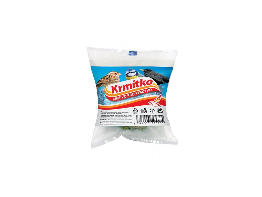 Lojová koule Krmítko XXL je vhodná pro venkovní ptactvo jako doplňkové krmivo. V letních měsících slouží jako příkrm, v zimě při nedostatku potravy jako důležitá část krmiva ptactva. Kouli je třeba umístit na místo chráněné před deštěm. Je v síťce, kterou je možné v případě umístění do krmítka sundat. Skládá se z pšenice, ovsu, čiroku, slunečnice a hovězího tuku. Hmotnost koule: 500 g.Doplňkové parametry
