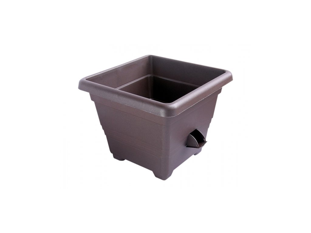 Květník čtvercového půdorysu s hladkým povrchem a nožičkami umožňujícími odtok vody. Kromě knotu obsahuje okénko na zalévání, k odtoku přebytečné vody při dešti a přístupu vzduchu ke kořenům. Rozměry: 40 x 40 cm, výška: 32 cm.Doplňkové parametry