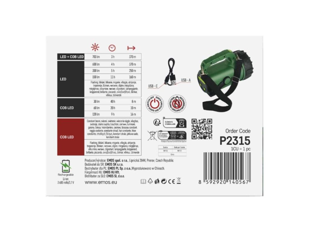 Produkt: LED nabíjecí svítilna P2315, 700 lm, 3600 mAhTechnické parametry: