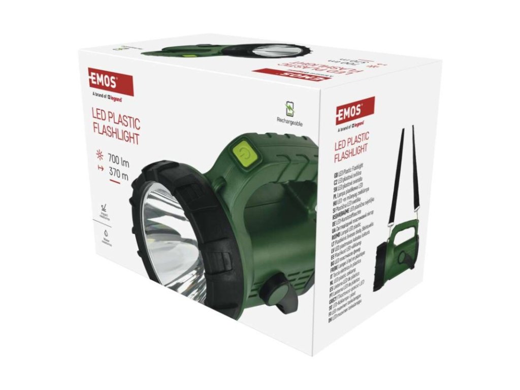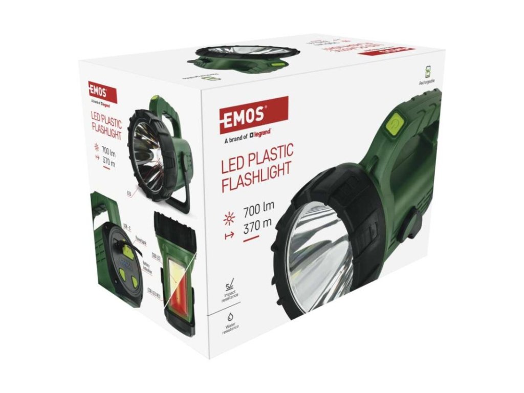 barva: zeleno-černábaterie součástí balení: anodoba nabíjení: 4 hdoba svícení: 4–11 hdoba svícení detail: LED + COB LED – 3 h, LED 100 % – 4 h, LED 50 % – 5 h, LED 25 % – 11 h, COB LED 25 % – 40 h, COB LED 50 % – 20 h, COB LED 100 % – 9 hdosvit: LED + COB LED – 370 m, LED 100 % – 370 m, LED 50 % – 250 m, LED 25 % – 160 m, COB LED 25 % – 8 m, COB LED 50 % – 10 m, COB LED 100 % – 16 mfokus: nehmotnost: 500 gLED indikace nabíjení: anoLED indikace stavu akumulátoru: anomateriál: ABS plast + gumamaximální dosvit: 370 mmaximální světelný tok: 700 lmnabíjecí: anonapájení: Li-Ion akupacknárazuvzdornost: anopočet režimů svícení: 10+příslušenství: USB kabel, popruhprodejní obal: 1 ks, papírová krabičkarežimy svícení: LED + COB LED, LED 100 %, LED 50 %, LED 25 %, LED blikání, COB LED 25 %, LED 50 %, LED 100 %, COB LED červená - 100 %, COB LED červená -pomalé blikání, COB LED červená - rychlé blikánírozměr: 205 × 125 × 156 mmspeciální funkce: funkce rychlého vypnutí, funkce ochrany baterie, funkce powerbanksvětelný tok: LED + COB LED – 700 lm, LED 100 % – 600 lm, LED 50 % – 300 lm, LED 25 % – 150 lm, COB LED 25 % – 30 lm, COB LED 50 % – 60 lm, COB LED 100 % – 120 lmtyp baterie: 3 600 mAh/3,7 Vtyp napájecího konektoru: USB Cvoděodolnost: ano (IP43)vybavení: otočný stojánekzáruční doba: 2 rokyzdroj světla: LED + COB LED (bílá, červená)značka: EMOS