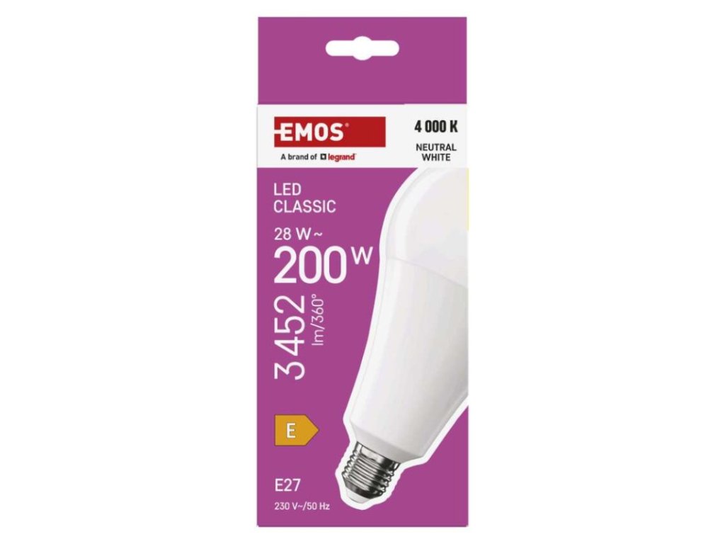 Produkt: LED žárovka Classic A95 / E27 / 28 W (200 W) / 3452 lm / neutrální bíláTechnické parametry: