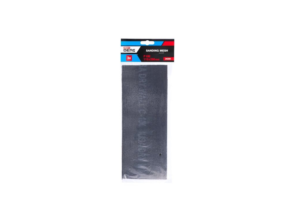 Brusná mřížka 115 x 290 mm, zrnitost 100, 3ks/sada. s eurootvorem , nosná tkanina ze skelných vláken, pryskyřicí přilepena brousicí zrna karbidu křemíku nanšena antistaticky, vhodné pro broušení sadrokartonových spárovacích hmot, i dalších materiálů, výhoda mřížkové struktury proti běžným brousicím papírům spočívá v tom, že se nezanáší odbroušeným materiálem.Doplňkové parametry