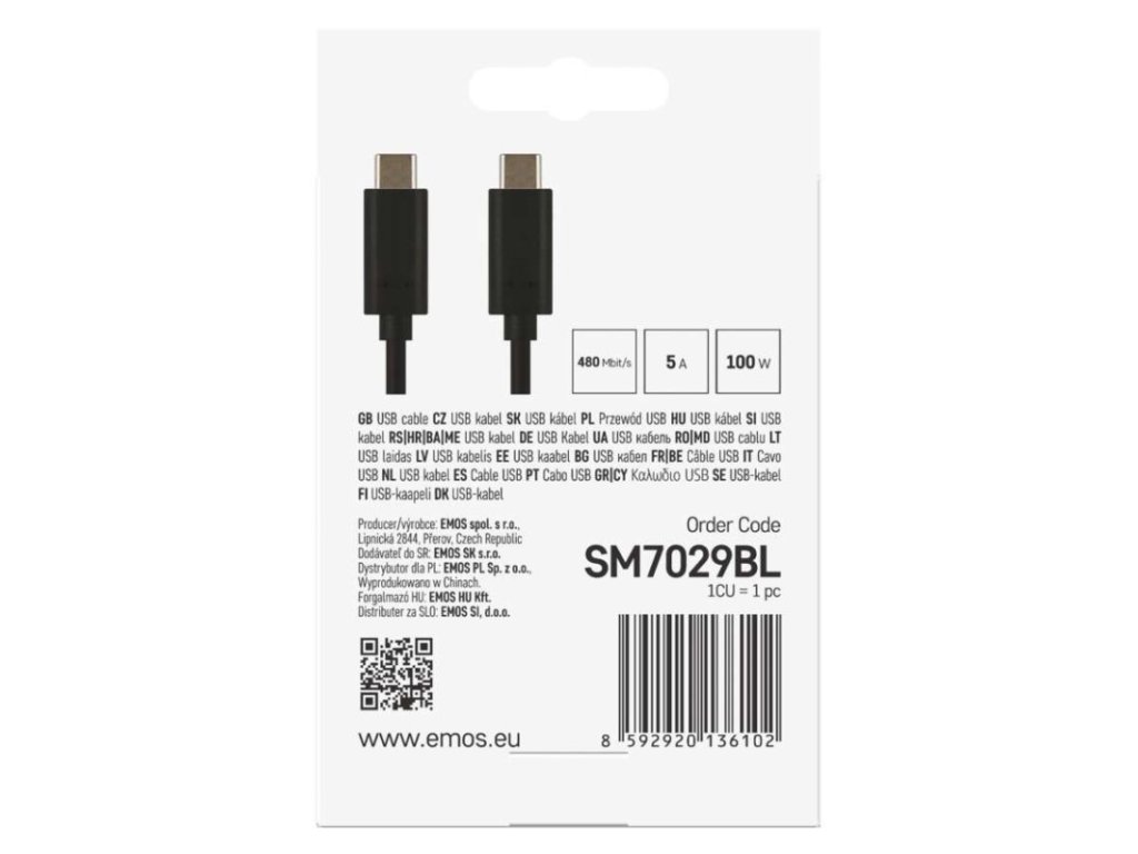 Produkt: Nabíjecí a datový kabel 2.0 USB-C / USB-C, 2 m, černýTechnické parametry: