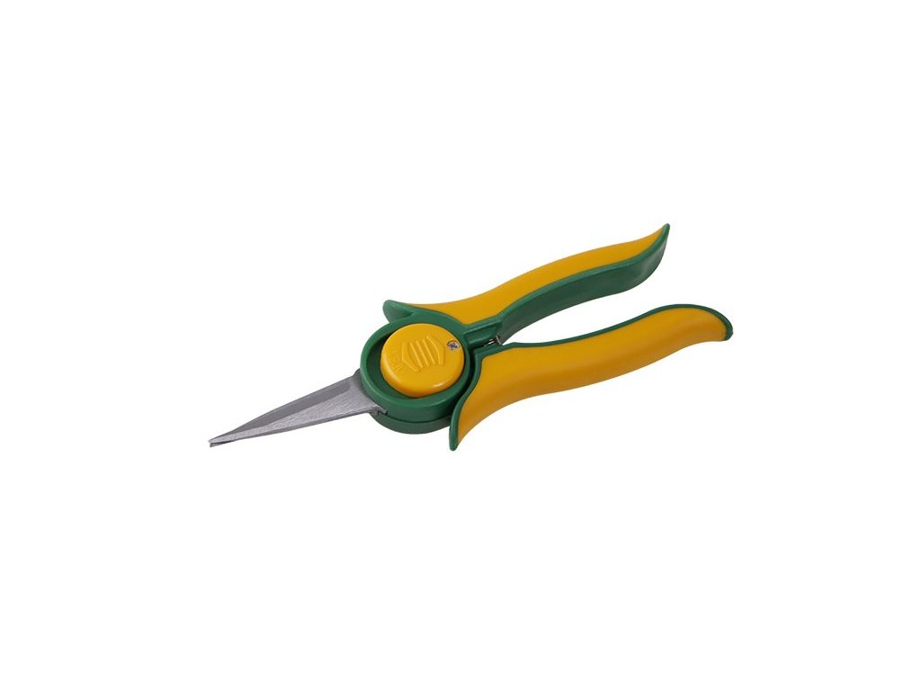 Zahradnické nůžky, nerezová čepel, celková délka 160 mm, středová pojistka k otevírání a zavírání, rovné ostří.