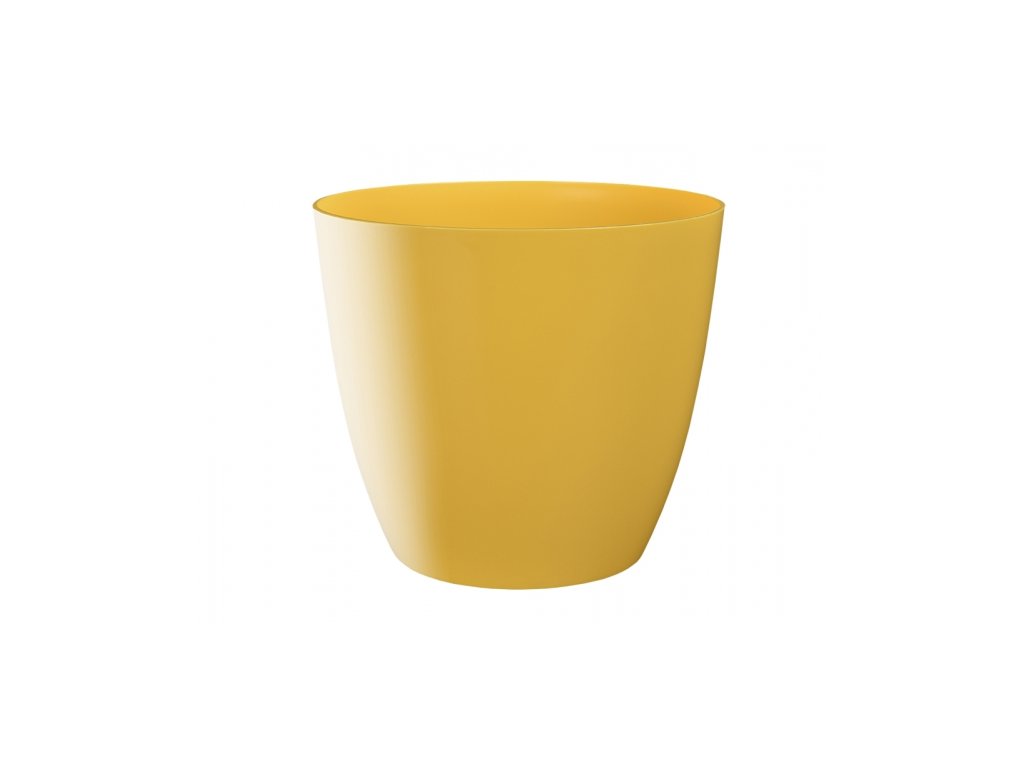 Lesklý žlutý plastový jednoduchý jemně kónický obal pro květníky s rostlinama do interiérů. Rozměry: d. 15 x v. 13,4cm.Doplňkové parametry