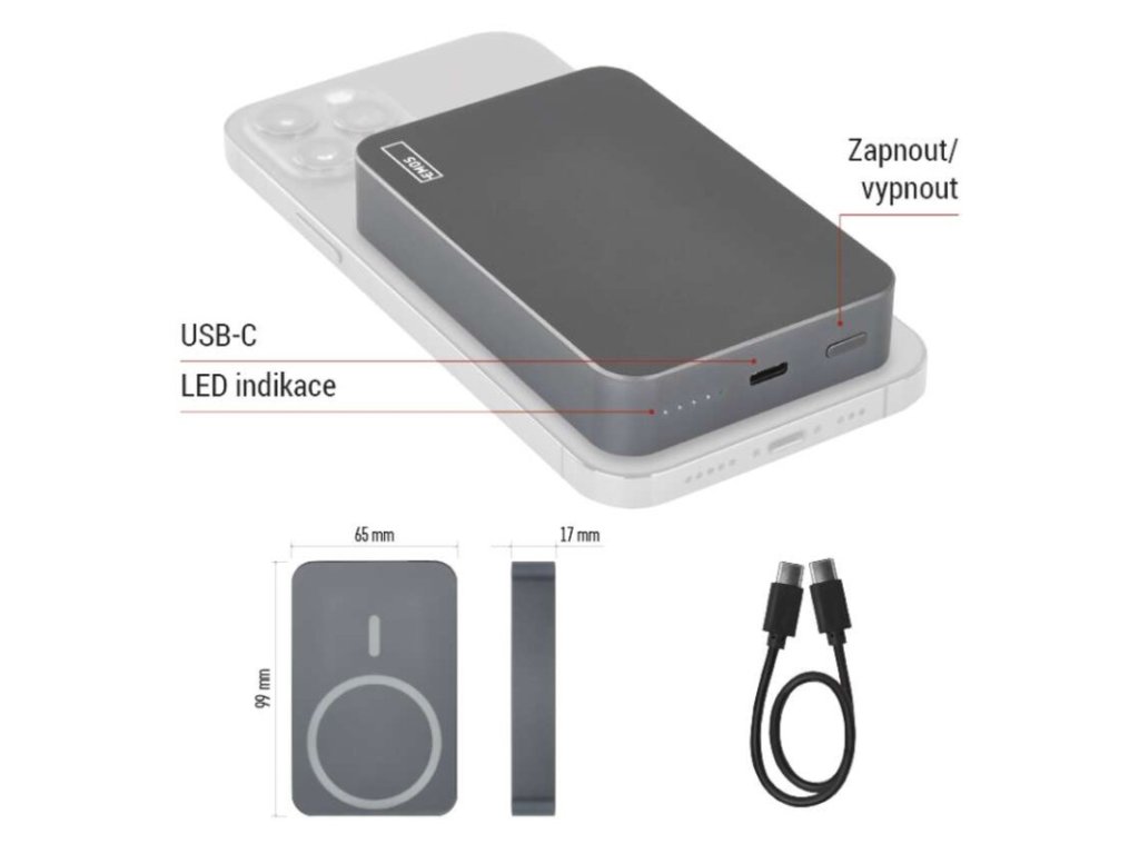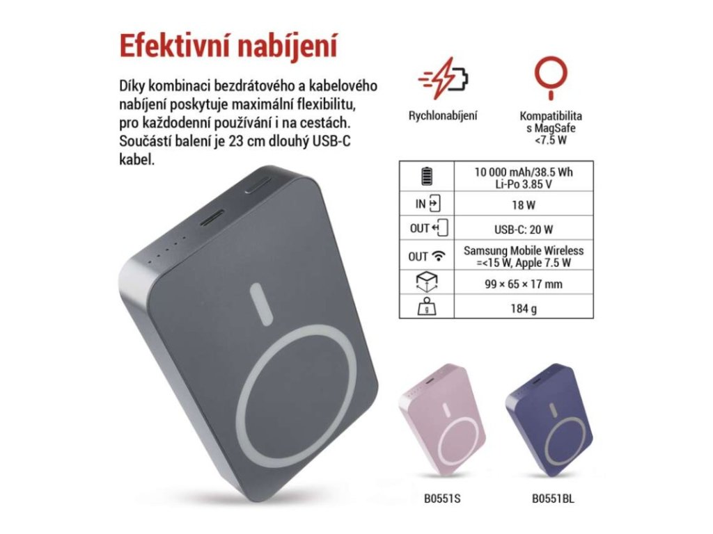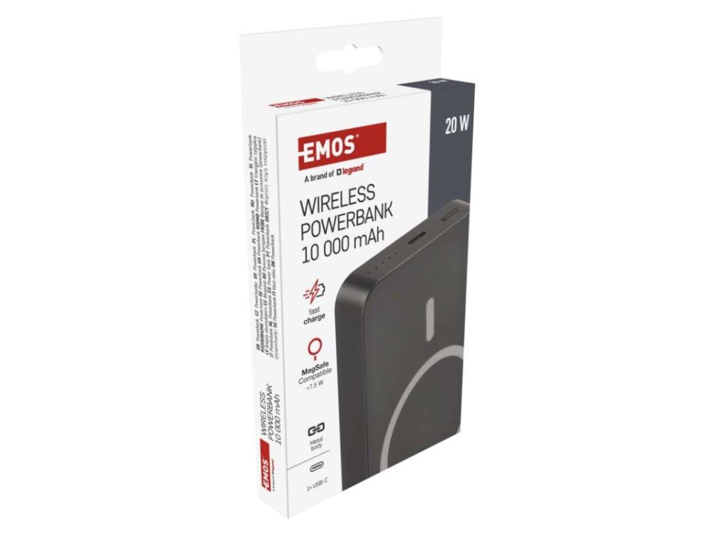 Produkt: Powerbanka EMOS WI 1046, 10 000 mAh, 20 W+Wireless, šedáTechnické parametry: