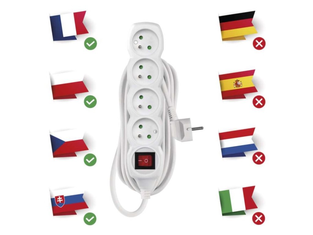 Produkt: Prodlužovací kabel 3 m / 4 zásuvky / s vypínačem / bílý / PVC / 1,5 mm2Technické parametry: