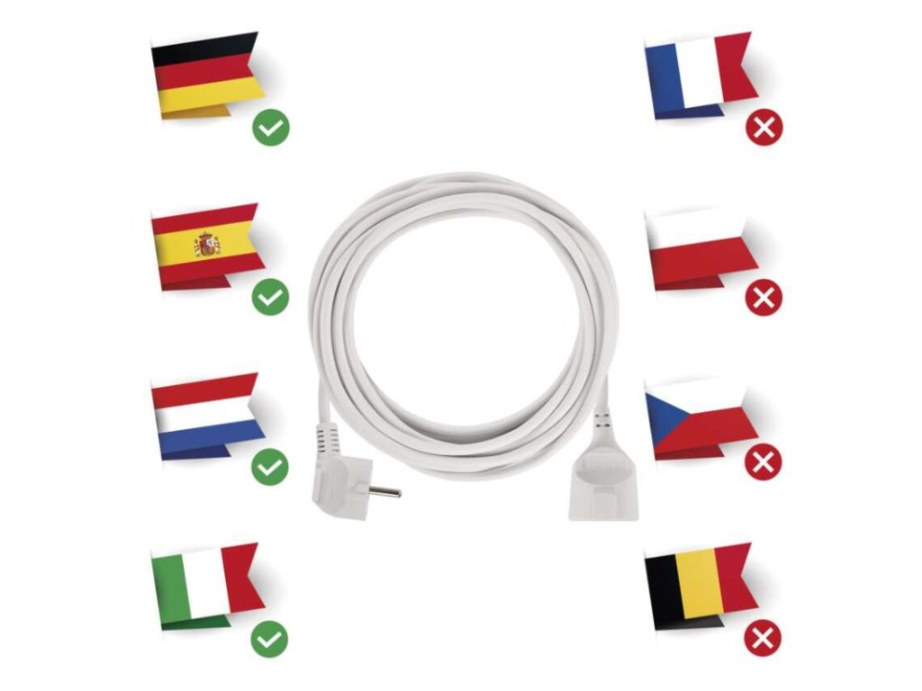 barva: bíládélka: 7 mdětské clonky: anomateriál zásuvky a vidlice: plastmax. zátěž: 3 680 Wnapětí/proud: 250 V~/16 A max.počet zásuvek: 1× 2P + PE SCHUKOprodejní obal: 1 ks, fólie+závěstyp izolace: PVCUSB výstup: nevodič: H05VV-F3G 1,5 mm²vypínač: ne