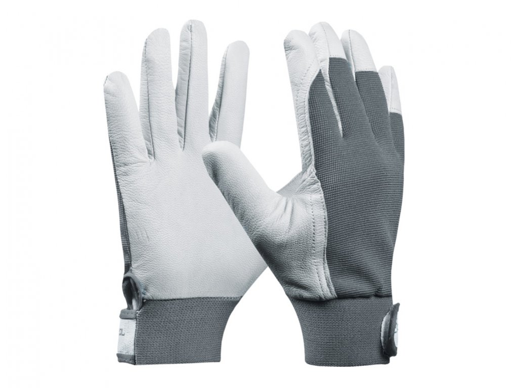 Pracovní rukavice vysoké kvality, vhodné pro práce stavební, lesnické, zahradnické, montážní a jiné. Extra měkká kůže, v kombinaci se strečovým spandexem na hřbetu ruky garantují extra pohodlí a ochranu rukou. S elastickou manžetou. Materiál: kozí kůže, polyester-spandex. Velikost: 10. Barva: šedá.Doplňkové parametry