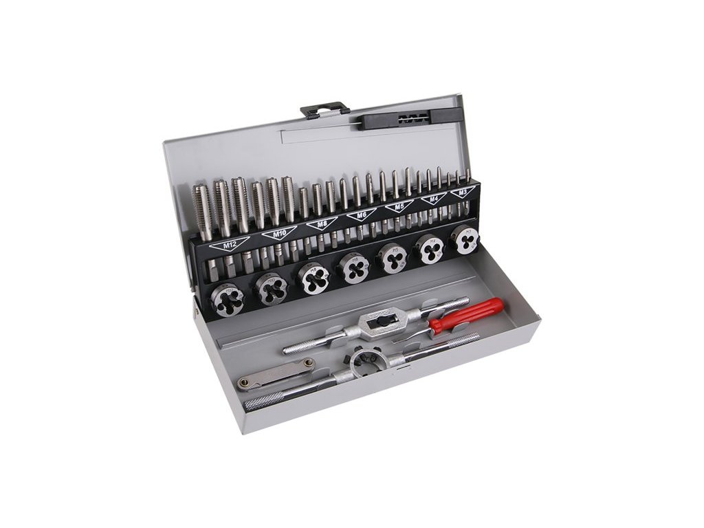 Sada sadových závitníků a závitových oček v plechovém boxu. Součásti balení: sadové závitníky M3 - M12, závitové očka M3 - M12, vratidlo pro závitová očka 25 x 9mm, stavitelné vratidlo pro ruční závitníky M3 - M12, závitová měrka, šroubovák. Sada obsahuje výběr nejpoužívanějších rozměrů závitových oček.Buďte první, kdo napíše příspěvek k této položce.