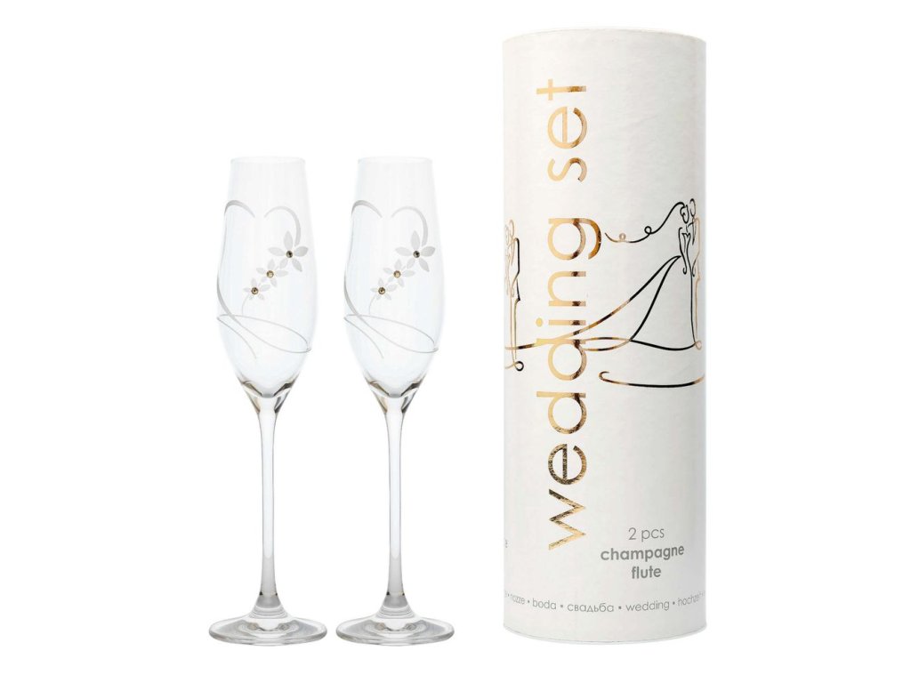 sklen. 210ml, 2ks SVATEBNÍ set, d6,6x26,3cm, Swarovski-flétna