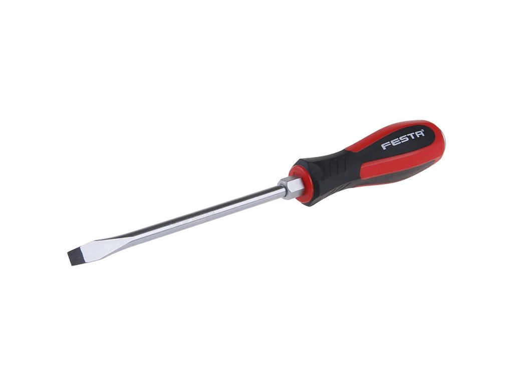 Kovový dřík šroubováku FESTA je vyroben z kvalitní chromvanadiové oceli, kalený hrot je magnetický, dřík šroubováku je pevně spojen s úderovou koncovkou, u rukojeti je šestihran pro použití klíče, kombinace polypropylenu a pryže na rukojeti a její ergonomický tvar zaručuje dobré antiskluzové vlastnosti a dobrou odolnost vůči mazadlům a chemikáliím.Doplňkové parametry