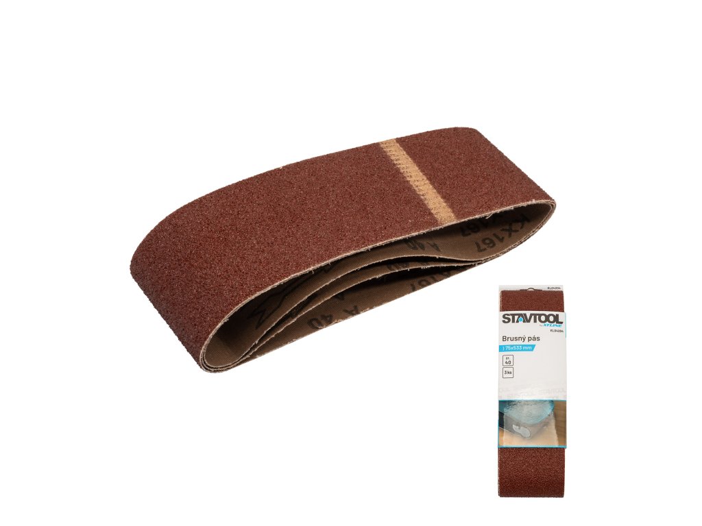 Produkt: STAVTOOL Brusný pás | 75x533 mm zr. 60 (1bal/3ks)Pro pásové brusky značek: AEG, BlackDecker, DeWalt, Hitachi, Makita, Metabo, Skil, Ryobi.