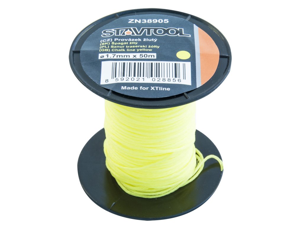 Produkt: STAVTOOL Provázek | žlutý 50 m / 1 mmVýrazně barevná voskovaná šňůra pro snadné vyznačení roviny při zednických pracích.