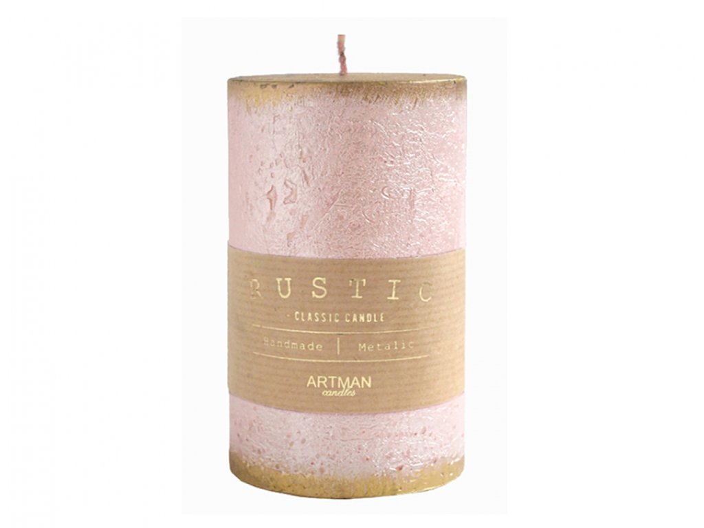 Rustikální svíčka ve tvaru válce. Ručně dělaná svíčka má metalický povrch s úpravou patina. Bude se vyjímat v moderním, dobovém i rustikálním interiéru. Rozměry: průměr 7cm, výška 9cm. Doba hoření: 50h. Barva: růžová.Doplňkové parametry