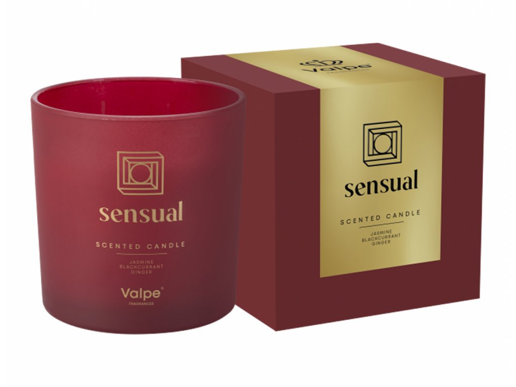 Vonná svíčka ve skle. Prémiová svíčka v matném skle, v trendy barvách. Kombinace vůní byla vytvořena tak, aby ladila s názvem svíčky. Vůně Sensual je namíchána z jasmínu, zázvoru a černého rybízu. Doba hoření: 40 h. Hmotnost: 300 g. Rozměry: průměr 10 cm, výška: 10 cm. Barva: bordó.Doplňkové parametry