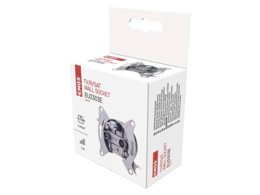 koncový útlum: 3 dBkryt součástí: neoznačení: TV (2) + R (2) + SAT (3)prodejní obal: 1 ks, krabiceprovedení: koncováprůchozí útlum: neuvádí serozměr: 26 × 60 × 60 mmtyp konektorů: IEC + F (female)