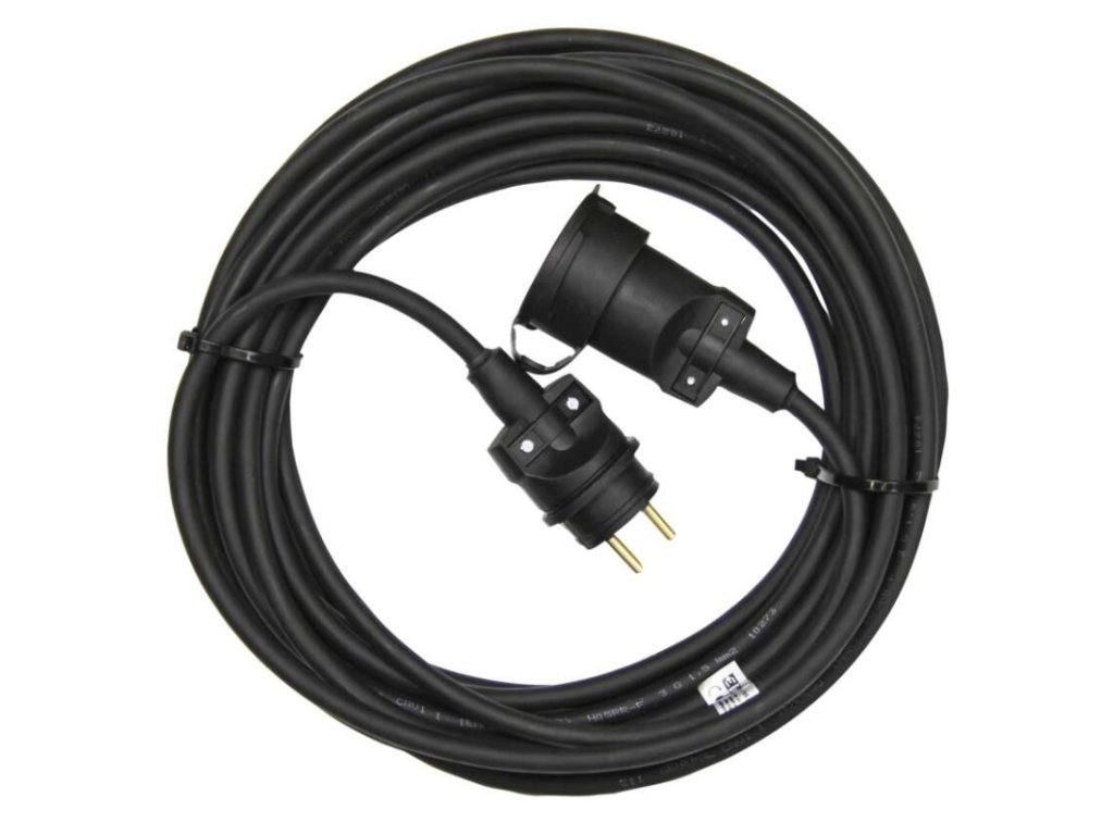 Produkt: Venkovní prodlužovací kabel 20 m / 1 zásuvka / černý / guma / 230 V / 1,5 mm2Technické parametry: