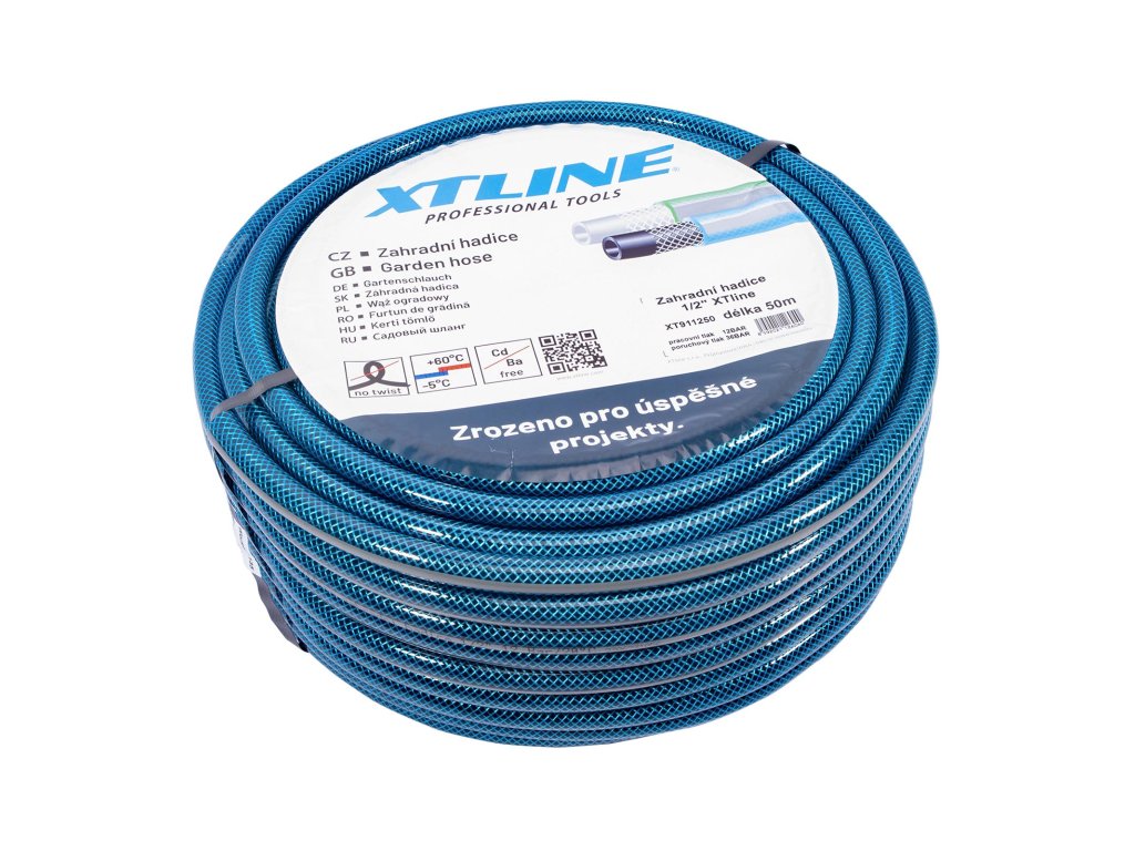 Produkt: XTLINE Hadice zahradní modrá PVC | 1" 50 mPVC hadice s černou vnitřní vrstvou a vnějším pláštěm v barevné kombinaci modré s šedým podélným pruhem. Svou konstrukcí je určená pro všeobecné použití. Vzhledem k vyšší tloušťce stěny má výborné mechanické vlastnosti a je odolná vůče deformaci. Vyztuženo vysokopevnostním PES vláknem.