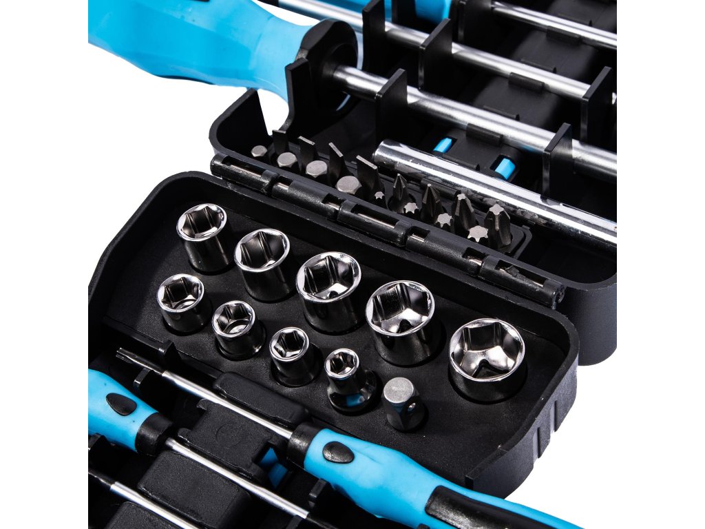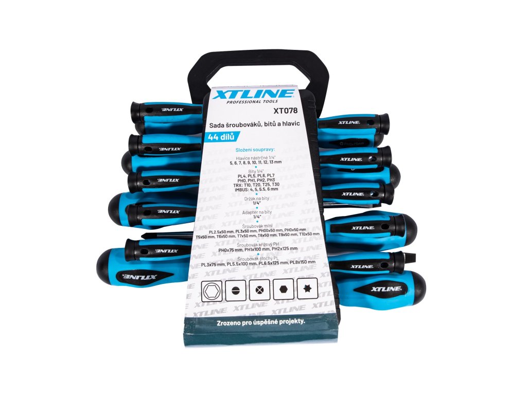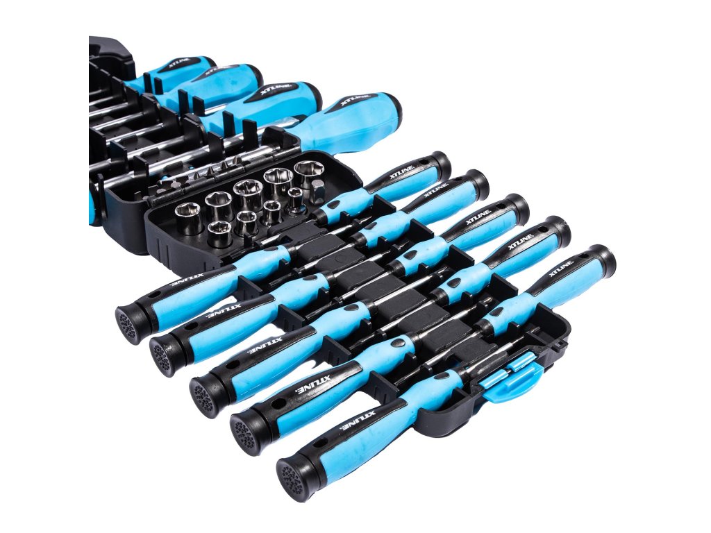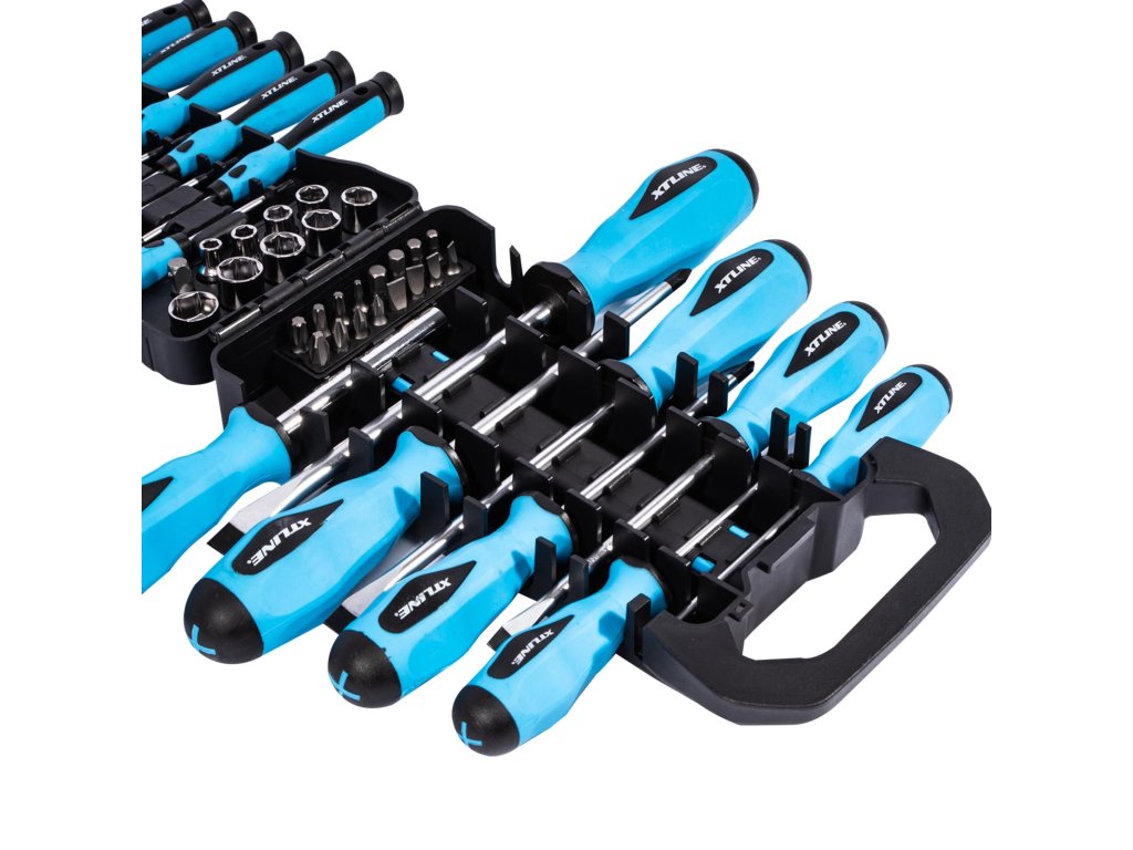 Produkt: XTLINE Sada šroubováků, bitů a hlavic 44 dílůSada šroubováků, bitů a hlavic je uložena v praktickém plastovém držáku.