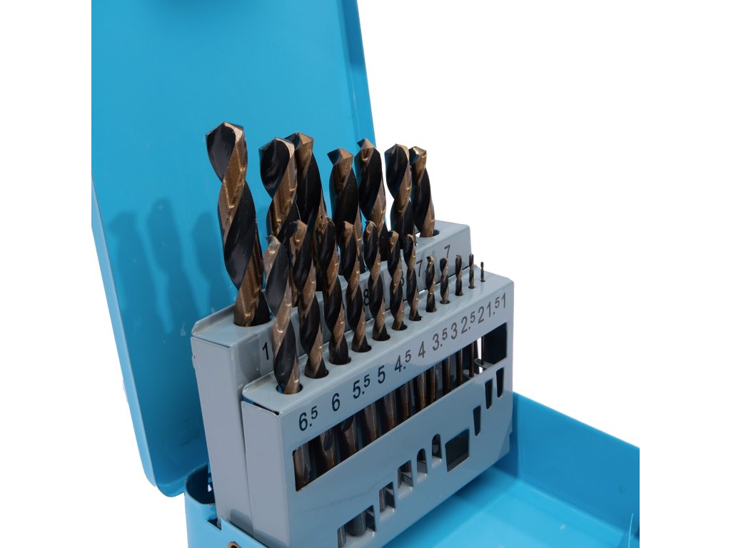 XTLINE Sada vrtáků do kovu HSS-R | 1-10 mm 19 dílů, kovový obal