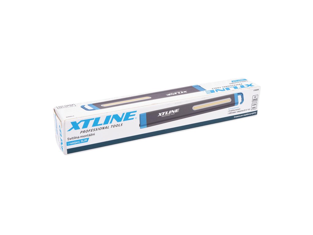 Produkt: XTLINE Svítilna montážní nabíjecí SLIM | 250 lm, 800 mAhMontážní nabíjecí svítilna s dvěma magnety a háčkem na zavěšení. Praktická pro dílenské práce nebo autoservisy, ale uplatnění najde i v domácnosti. Svítilna disponuje barevný podsvícením ovládacího tlačítka a funkcí stroboskopu. Nabíjecí port USB-C. USB kabel je součástí balení. Doporučená nabíječka: 5 V/1 A