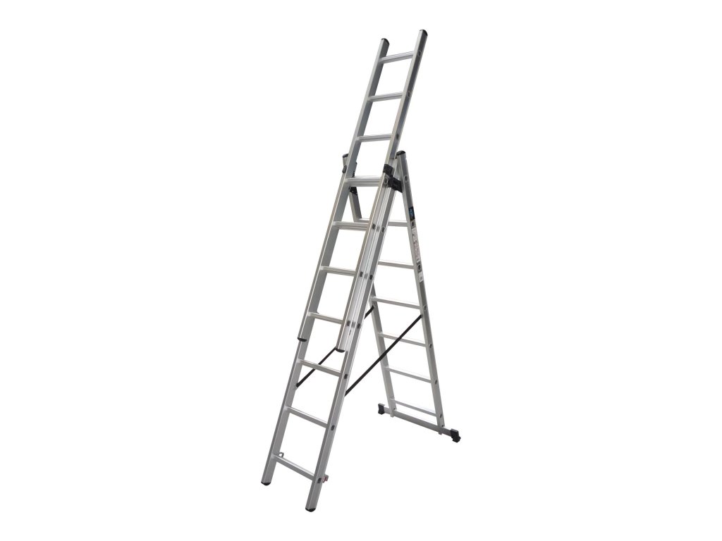 Produkt: XTLINE Žebřík trojdílný hliníkový | 3x11Trojdílný žebřík vyniká svou univerzálností a rychlou a snadnou manipulací. Lze použít jako jednoduchý, dvojitý nebo trojitý výsuvný a samostatně stojící žebřík. V poloze štaflí nabízí zvětšení dosahu pomocí vysunutí pohyblivého dílu. Kvalitní hliníkové profily s prolisy umožňují při nízké váze žebříku jeho tuhost při používání. Pojistka pro zajištění jednotlivých dílů žebříku.